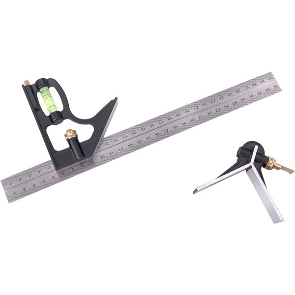 Az Extol asztalos kombinált derékszög/vonalzó vízmértékkel 300 mm-es rozsdamentes acél vonalzóval és 0°–45°–90° jelölésekkel segít a pontos jelölésben és beállításban. Többfunkciós Kéziszerszám, ALU sablonfejekkel és beépített vízmértékkel (cikkszám: 8825105).
