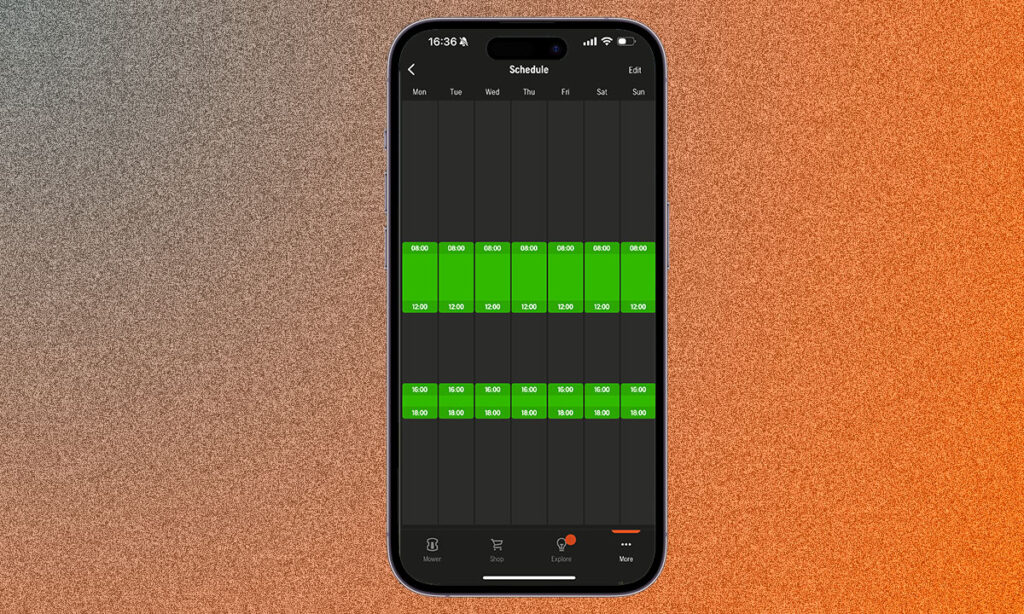 A fűnyírási időt a gyep növekedéséhez igazítja, ami azt jelenti, hogy a Husqvarna Automower® az erős fűnövekedés idején nyírja legintenzívebben a füvet. Napos vagy száraz időben vagy a szezon vége felé a berendezés kevesebb időt tölt fűnyírással, ami csökkenti a fűnyíró és a gyep kopását.