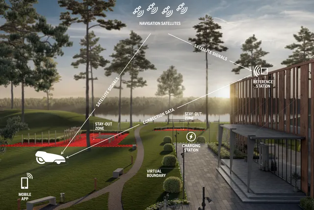 A műholdalapú RTK-GNSS technológián alapuló, virtuális és vezeték nélküli működés akár 2 cm-es pontosságot is lehetővé tesz. A fizikai határolóvezeték hiánya új szintű robusztusságot és rugalmasságot biztosít, így rendszeres mélylazítás és gyepfelújítás is elvégezhető anélkül, hogy az a robot telepítésének működését veszélyeztetné.